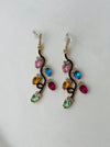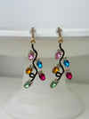 Gold drop earrings with multicolour crystals and black vine detailing.