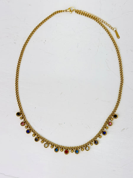 A curated collection of simple chain, sweater, choker, layered, long and short gold and silver plated necklaces with pops of colour, stone and crystal accents.