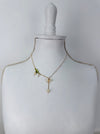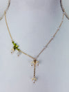 A delicate drop design necklace  with dainty pink flower bells and tiny pearl accents.