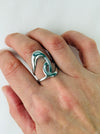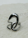 A simple adjustable ring with a modern wave design in polished silver-tone.