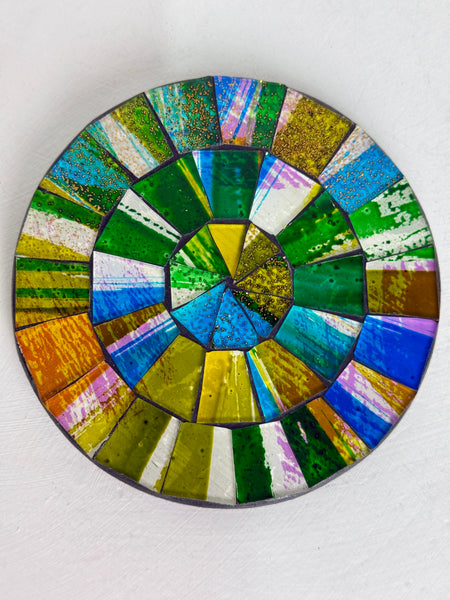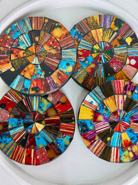 Hand painted and hand cut mosaic glass coasters in a dazzling range of multi colour spectrums.  Handmade in Bali.