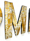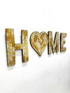 Atemberaubendes Mosaik „HOME“, als einzelne Buchstaben aufgehängt.