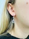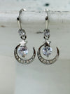 Elegante silberfarbene Tropfenohrringe mit Halbmond- und Sterndesign, verziert mit funkelnden, klaren Glaskristallen.
