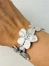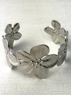 Un bracelet manchette en argent orné de détails floraux fleuris.